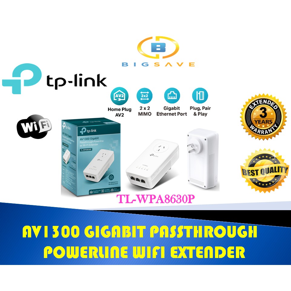 Tp Link Tl Wpa8630p Av1300 3 Port Gigabit Passtrough Powerline Dual Band Wifi Extender With 2x2 Mimo Wifi Clone Button Shopee Malaysia